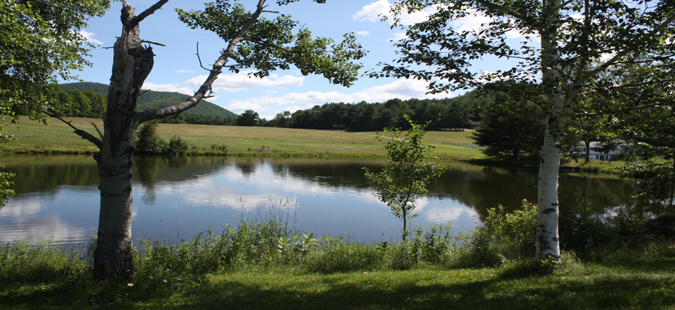 Hidden Valley Farm is a picturesque country farm spread over 350 acres of pristine land. Its wide open meadows and ponds are surrounded by a spectacular view of Vermont’s famed mountains. The farm features an old-fashioned barn and two separate dwellings for rent on the property. Enjoy staying in the scenic 80-year-old farmhouse or in the charming log cabin. Or rent them both for reunions, weddings, family get-togethers, retreats, seminars, writing practicums, etc.